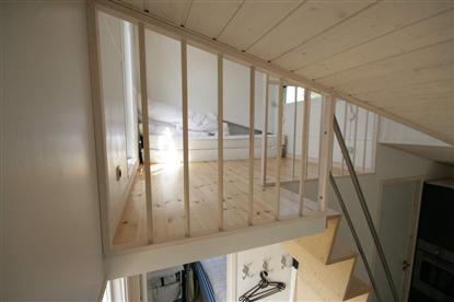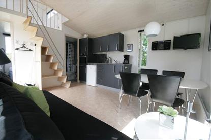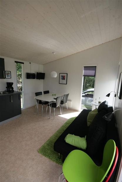 Innvendig er det masse lys og luft, med tak i kip, velutstyrt kjøkken, bad og toalett, soverom og en romslig hems til barna. Mye kan man få plass til på 25 kvm., men å klare å gjøre det lekkert og luftig i tillegg, gir ekstra pluss i vår karakterbok. Se vårt bildegalleri ? vi synes selv at bildene taler for seg selv.