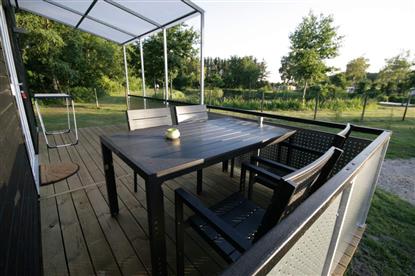 En del av filosofien rundt camping er å leve i pakt med naturen. Selv om vi med tiden har blitt rene sofagriser, tiltaler tanken om å leve i naturen oss fortsatt. Og nettopp naturen kommer man i høy grad i nærkontakt med på den ekstra store, og delvis overbygde terrassen ved hytta.