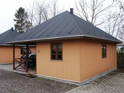 Ikke langt fra lekeplassen ligger de 5 luksushyttene, som passer perfekt inn i stilen med sitt lille spisse tak, som om det var et pannekakehus.