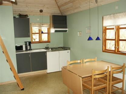 Hytta er godt innredet med en stor oppholdsrom, hvor det er god plass til 6 personer. Det er servise til 6 personer, miniovn og det man ellers trenger på et kjøkken.