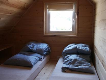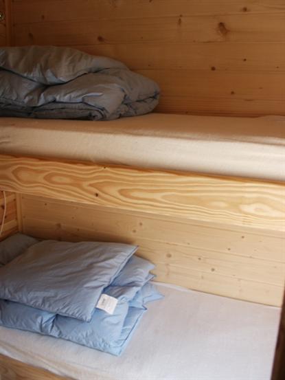 Soverommene er utstyrt med skyvedører, noe som gjør det enkelt å åpne skapene og komme inn/ut av rommet. Det er et rom med dobbeltseng, et med en køyeseng samt en hems med to madrasser.