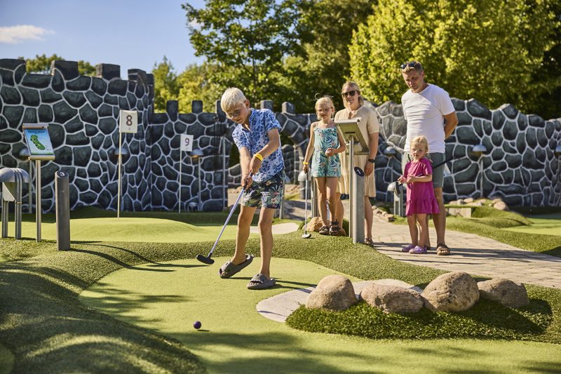 Barna kommer heller ikke til å kjede seg. Vi har blant annet lekeplass med stort klatrestativ, vippefigurer, middelalder minigolfbane, hoppepute, hoppeslott og trampoline, airhockey og bordtennis m.m.