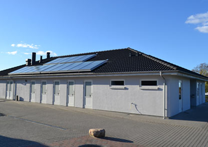 Alle servicebygninger er enten helt nye eller fullstendig renoverte. Når du skal i dusjen, foregår det på ditt eget bad med håndvask og eget toalett, så du føler at du trer inn i ditt eget baderom. Skal du lage mat, kan du ta med hele familien til kjøkkenet, hvor barna kan underholdes enten ved å delta, se på TV eller spille medbrakte spill mens foreldrene lager mat. Uansett hvor du er på plassen, er det kort avstand til servicebygninger og sanitære fasiliteter.
