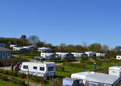 Baaringvig Feriepark - Skovlund Camping ligger på en lang skråning, derfor har nesten alle plassene havutsikt, noe som gjør plassen til en svært spesiell campingplass! Man merker straks roen og hyggen senke seg når man har pakket ut, satt pluggene i jorden og satt seg i hagemøblene for å nyte utsikten.