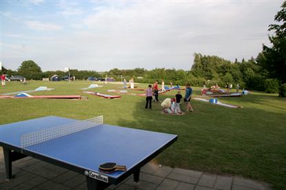 Svaneparret med andunger driver rundt i vannet ved campingplassen, intetanende om at de faktisk gir navn til den store campingplassen på Sør-Sjælland. De Hvide Svaner Camping ved Karrebæksminde har et rikt "svaneliv" ved plassens båtbrygge, men det er oppe på plassen at vi virkelig finner aktivitet!