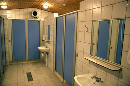 Fasilitetene er samlet i én stor bygning som inneholder toaletter, kjøkken, informasjon, familiebaderom, vaskeri og en liten TV-stue. Alt i alt kan forholdene virke litt for få sett i forhold til plassen størrelse, men på grunn av fredningsplaner m.m. får plassen rett og slett ikke lov til å utvide mer. Under vårt besøk i høysesongen fungerte forholdene fint - vi så ikke mange køer.