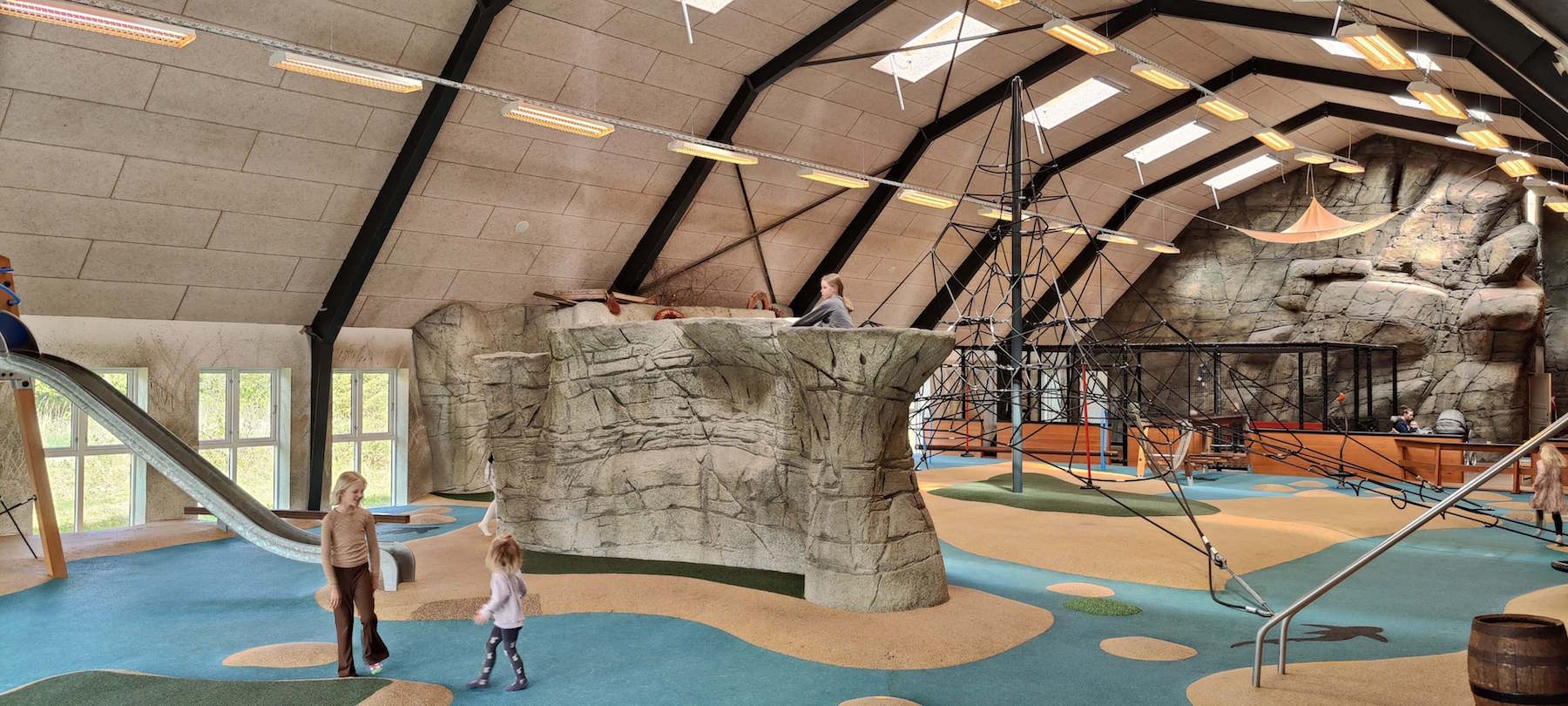 Inne finner dere nemlig et kjempestort lekeland på hele 600 m2 med et klatrenett i midten, og små "øyer" som barna kan hoppe rundt mellom.