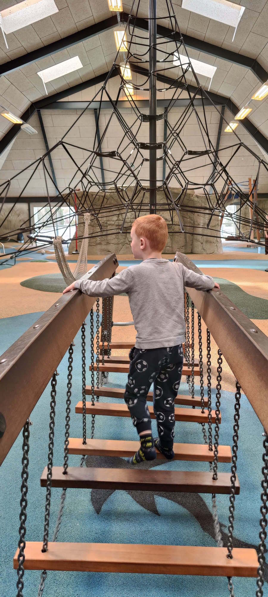 Heldigvis for ham (og oss) lå det en mindre lekeplass rett ved siden av hytta vår. Nær resepsjonen lå det en stor lekeplass med hoppeputer, et kjempetårn og en lang taubane, som Samuel elsket.