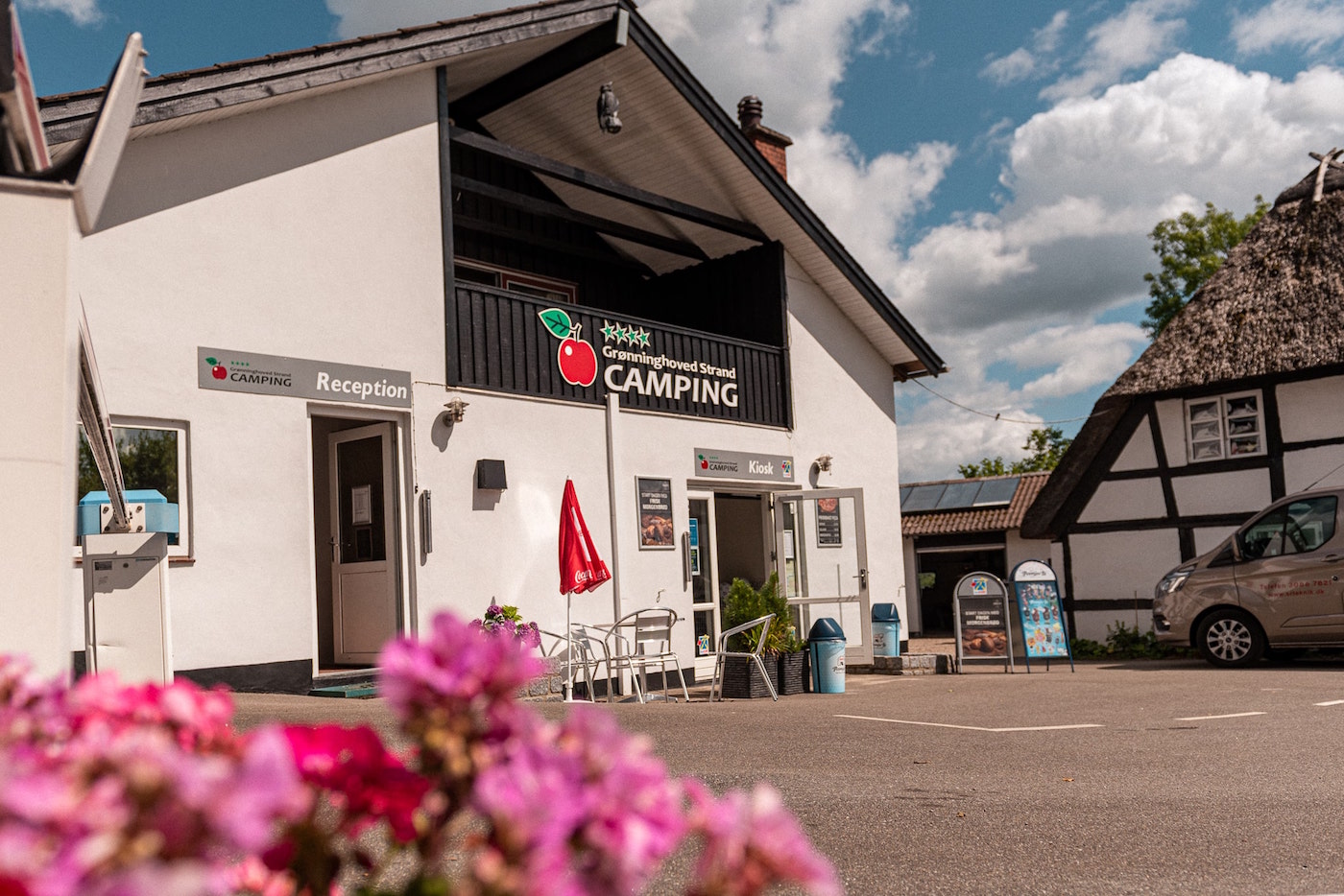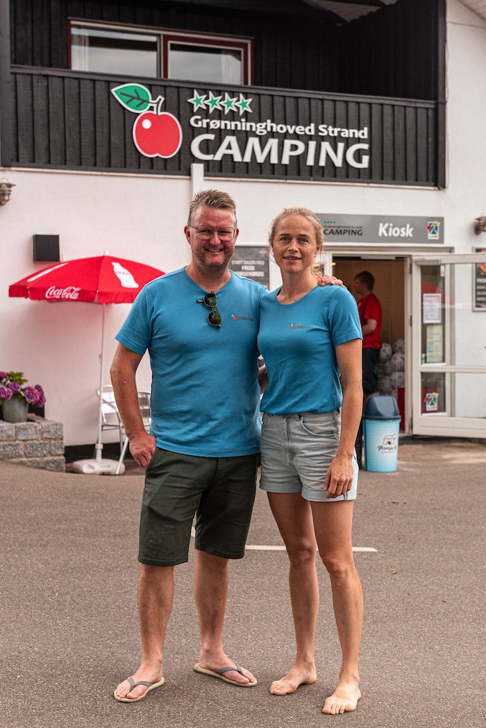 Vi har dratt på camping et godt stykke ut på landet - omtrent 15 km fra Kolding sentrum ligger den hyggelige Grønninghoved Strand Camping, som er anlagt i en gammel fruktplantasje. På vei inn til plassen må man holde tungen rett i munnen - tilkomstveiene er svingete og ikke de aller bredeste. Men når man først har fått pluggene i jorden, er det god plass å boltre seg på.