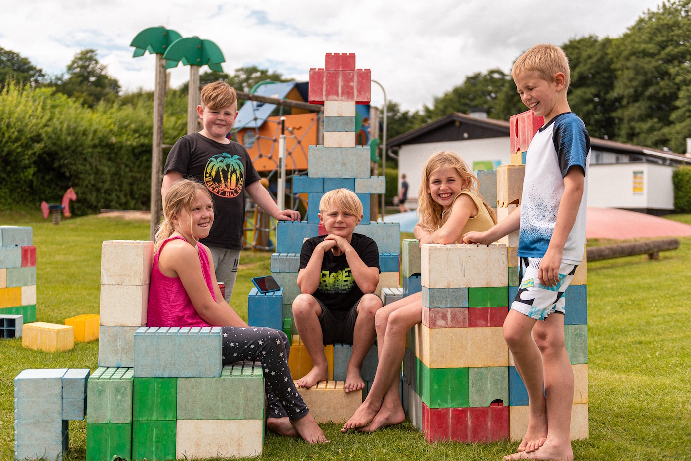 Men plassen har gjort mye for å gjøre ferien bra for de unge. To større lekeplasser, samt et par små plasser som "ligger ute i landskapet" blir raskt naturlige samlingspunkter for barna.