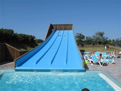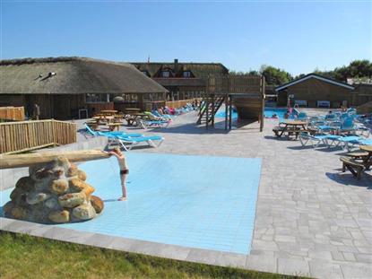 Det helt unike ved Hanstholm Camping må sies å være bassenget. Umiddelbart ser det kanskje ut som ethvert annet bassengområde ? det er et fint stort basseng med sklie for de mindre barna. Det er et lite barnebasseng. Og riktig nok er den 35 meter høye surfing hill med 4 baner den største på en dansk campingplass, men det over 300 kvm store solfangeranlegget ved siden av bassengområdet gjør at temperaturen i det store bassenget sjelden er under 28° gjennom hele sommeren, og barnebassenget er godt over 30°. Helt klart et stort pluss at man selv på en overskyet dag kan slappe av i bassenget med barna, uten å måtte dra dem opp med blå lepper etter selv et kort opphold. Dessuten er det mange solstoler og tilgang til både bassengbar og kafé.