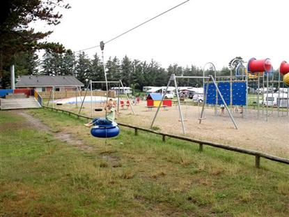 Noe av det første barna gjør når vi ankommer en ny campingplass, er å løpe bort for å sjekke lekeplassene, mens mor og far pakker ut. Også på Hanstholm Camping kunne vi ta oss god tid til å komme på plass, for spesielt den store lekeplassen var en suksess hos både 6- og 8-åringen. Her var bl.a. hoppepute, en veldig lang taubane, stort klatrestativ, en mooncarbane til fri bruk, samt en av de gode gamle karusellene som kan gi en god omgang kvalme hvis man ikke klarer å stoppe i tide.