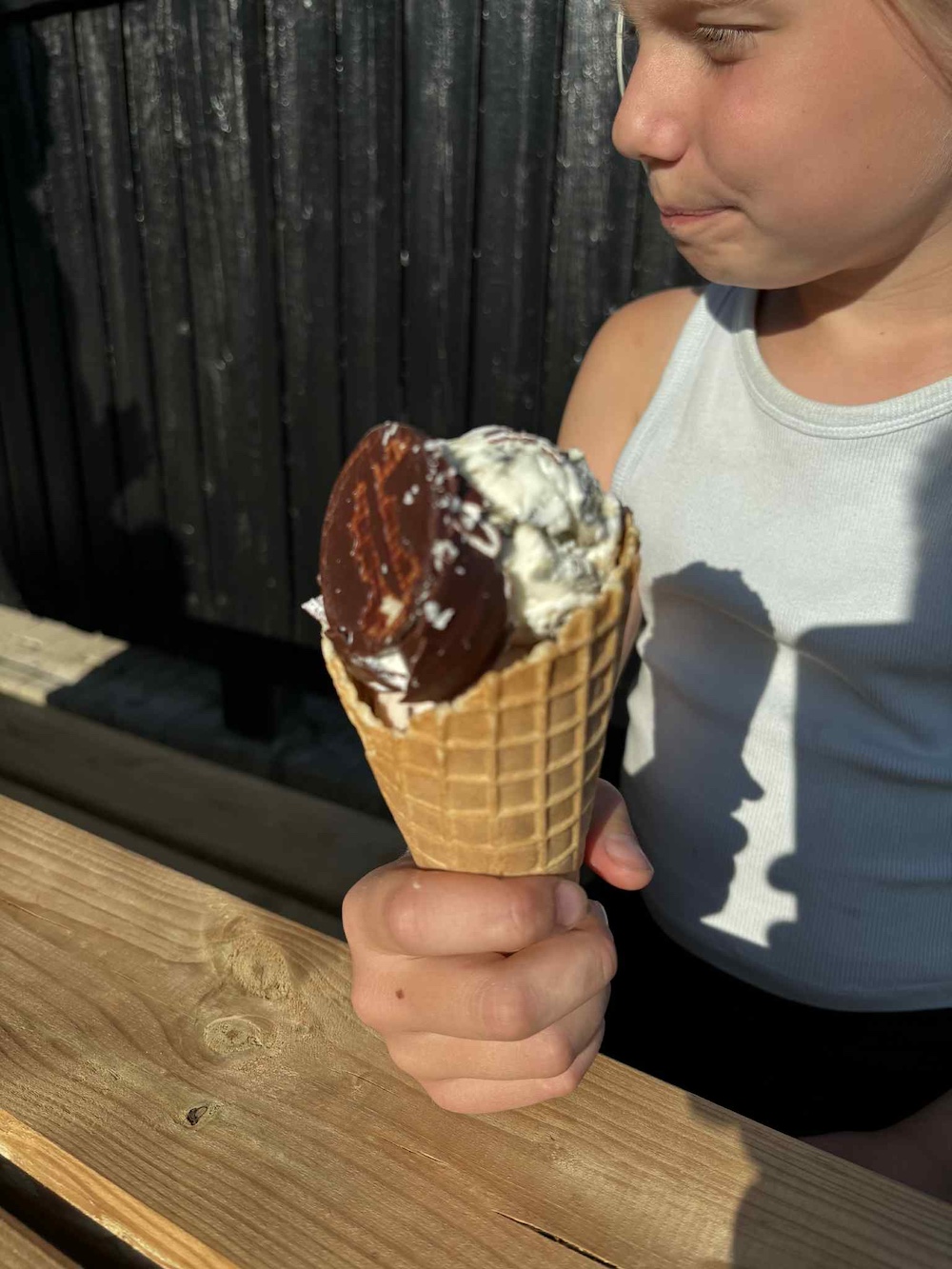 Isene fikk vi selvfølgelig også testet. Her var det Klaus som sto bak disken, klar til å servere gammeldagse isvafler - med flødebolle, hvis man vil.