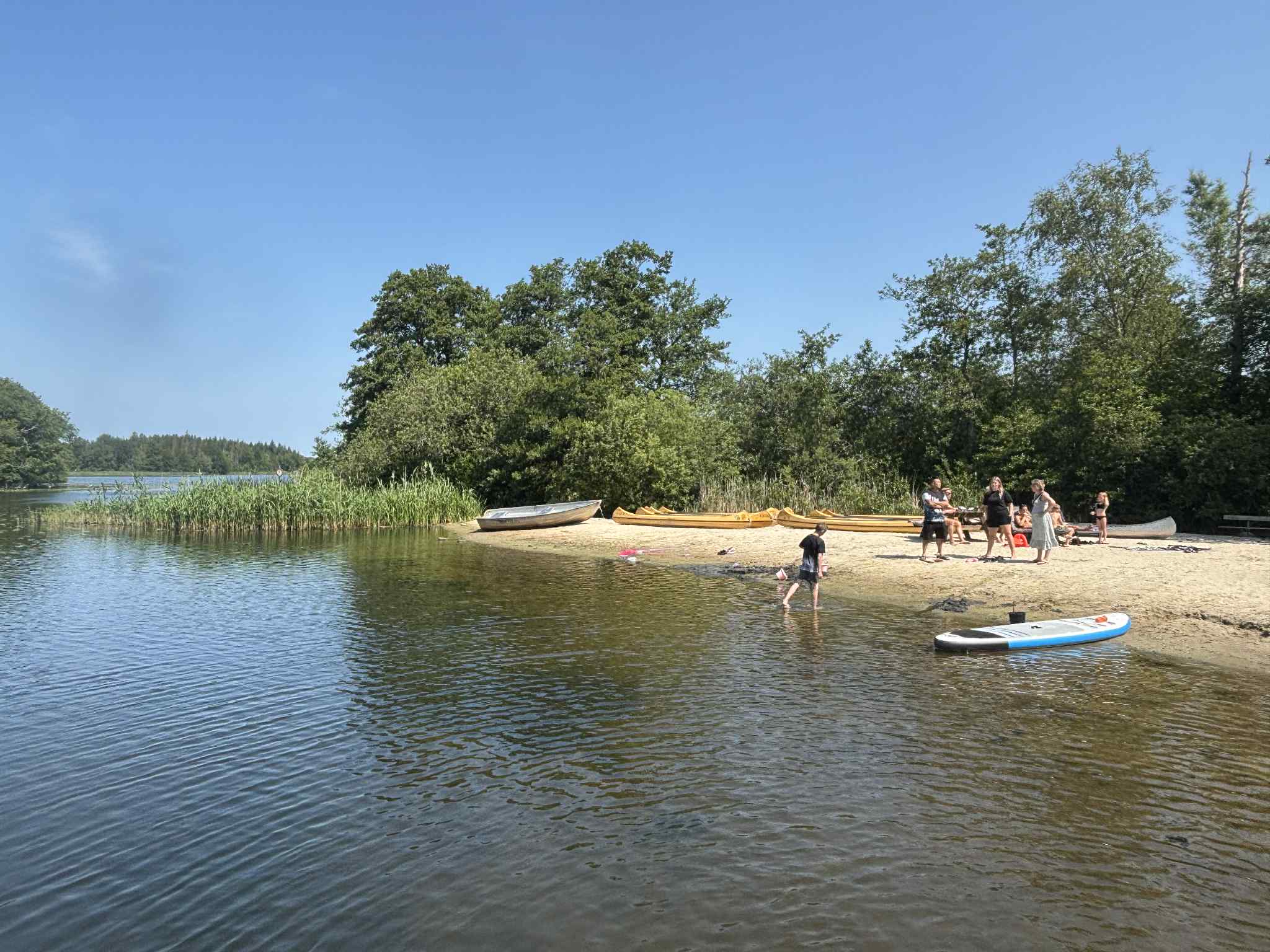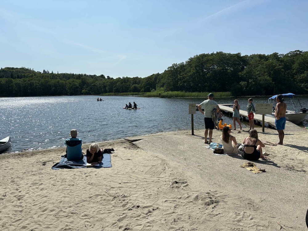 Herfra er det også kortest vei til innsjøen, hvor barn og voksne lett kan få timene til å gå med lek i vannet og avslapning på stranden.