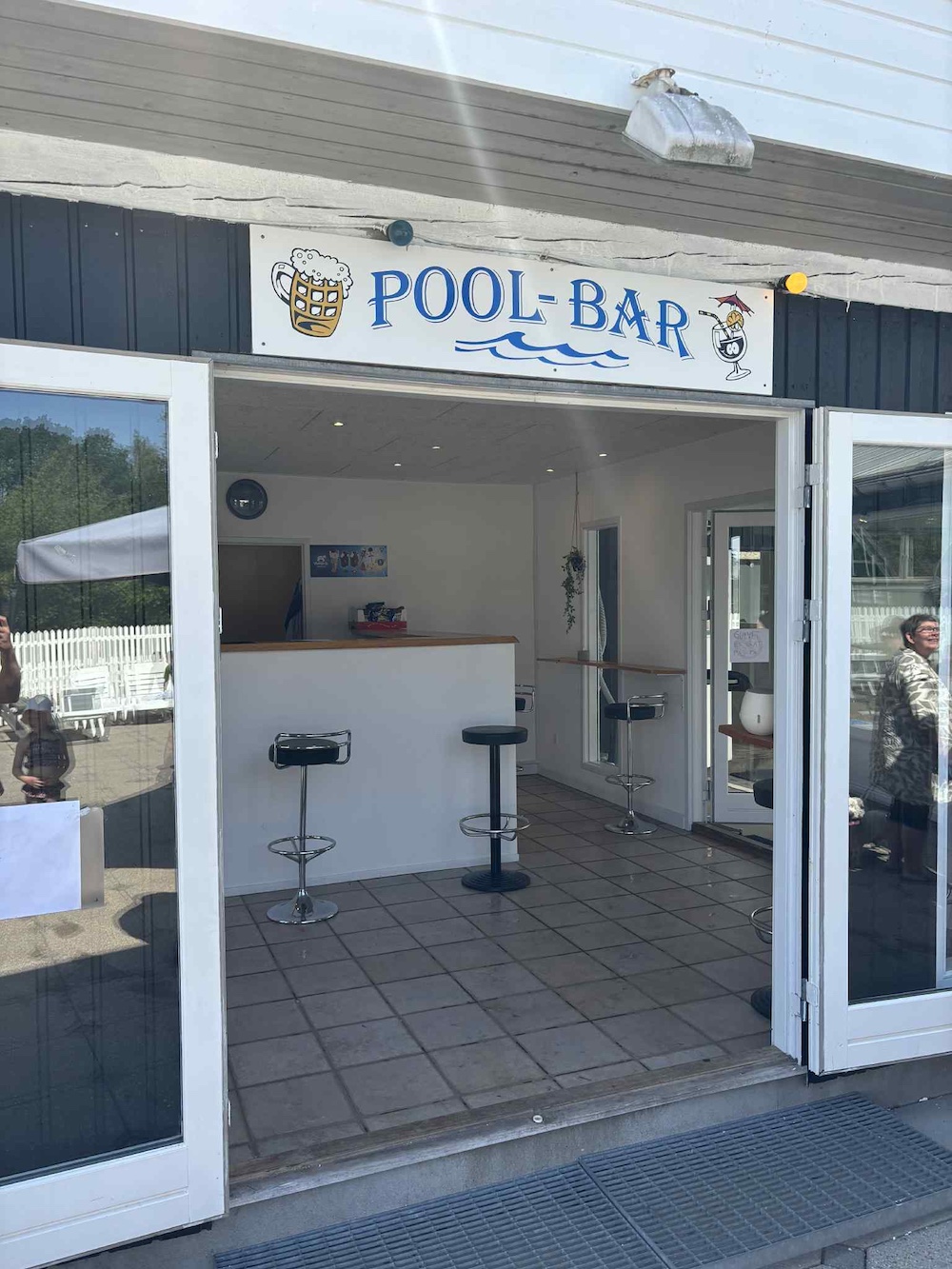 Har du ikke selv lyst til å hoppe i vannet, kan du slå deg ned rundt bassenget eller bassenggården, og det er også en Bassengbar med egne åpningstider. Her kan du stille tørsten med en slush ice, en kald fatøl eller en brus - og det er også toast og andre lette snacks på menyen.