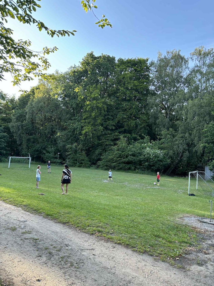 - En fotballbane som summer av liv - spesielt om kvelden, hvor barna lynraskt var i gang med kampene igjen etter maten