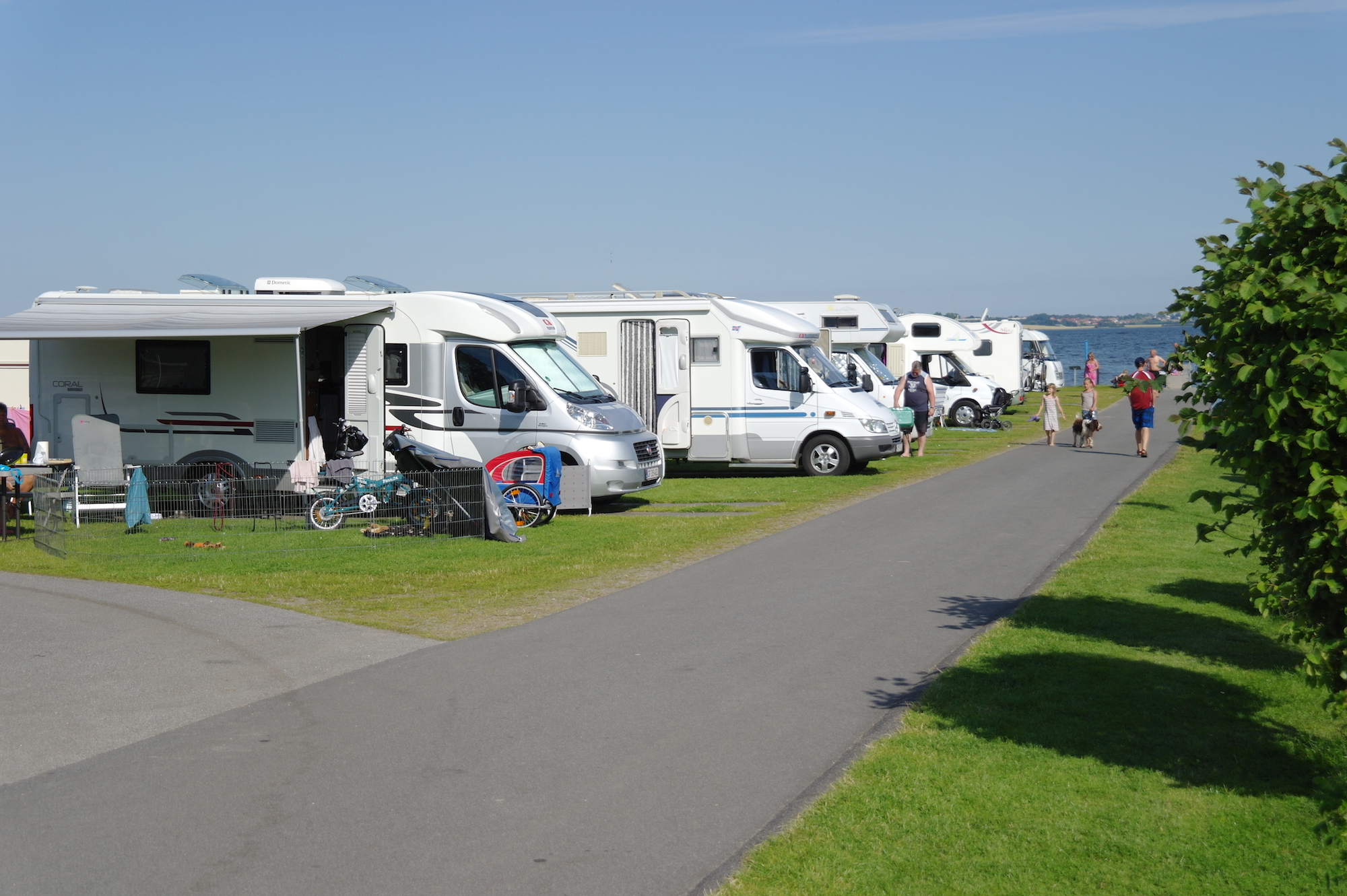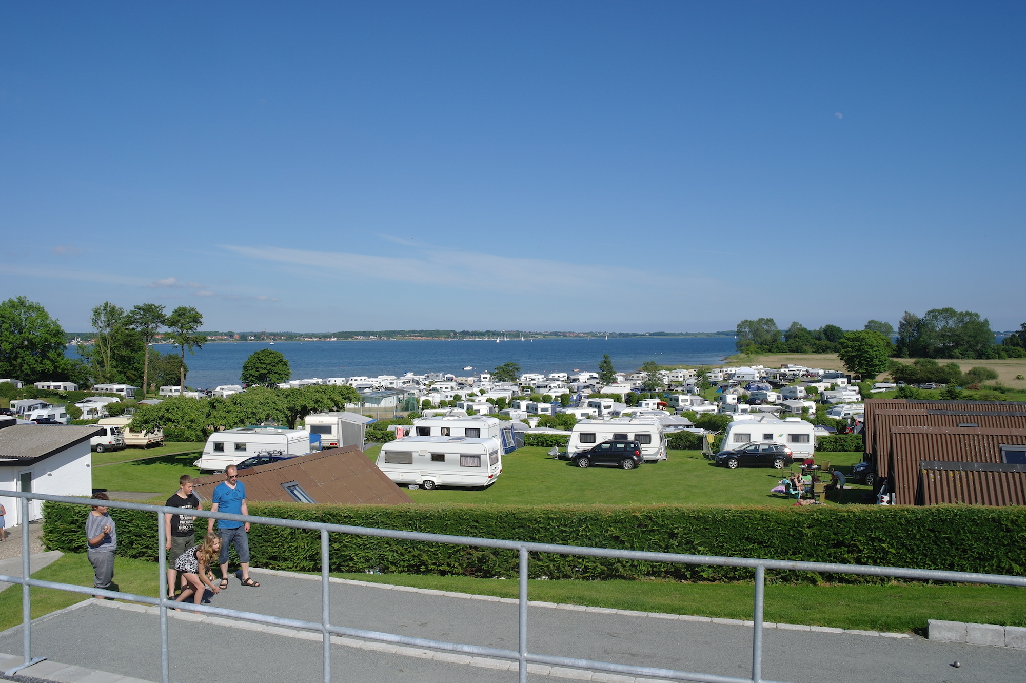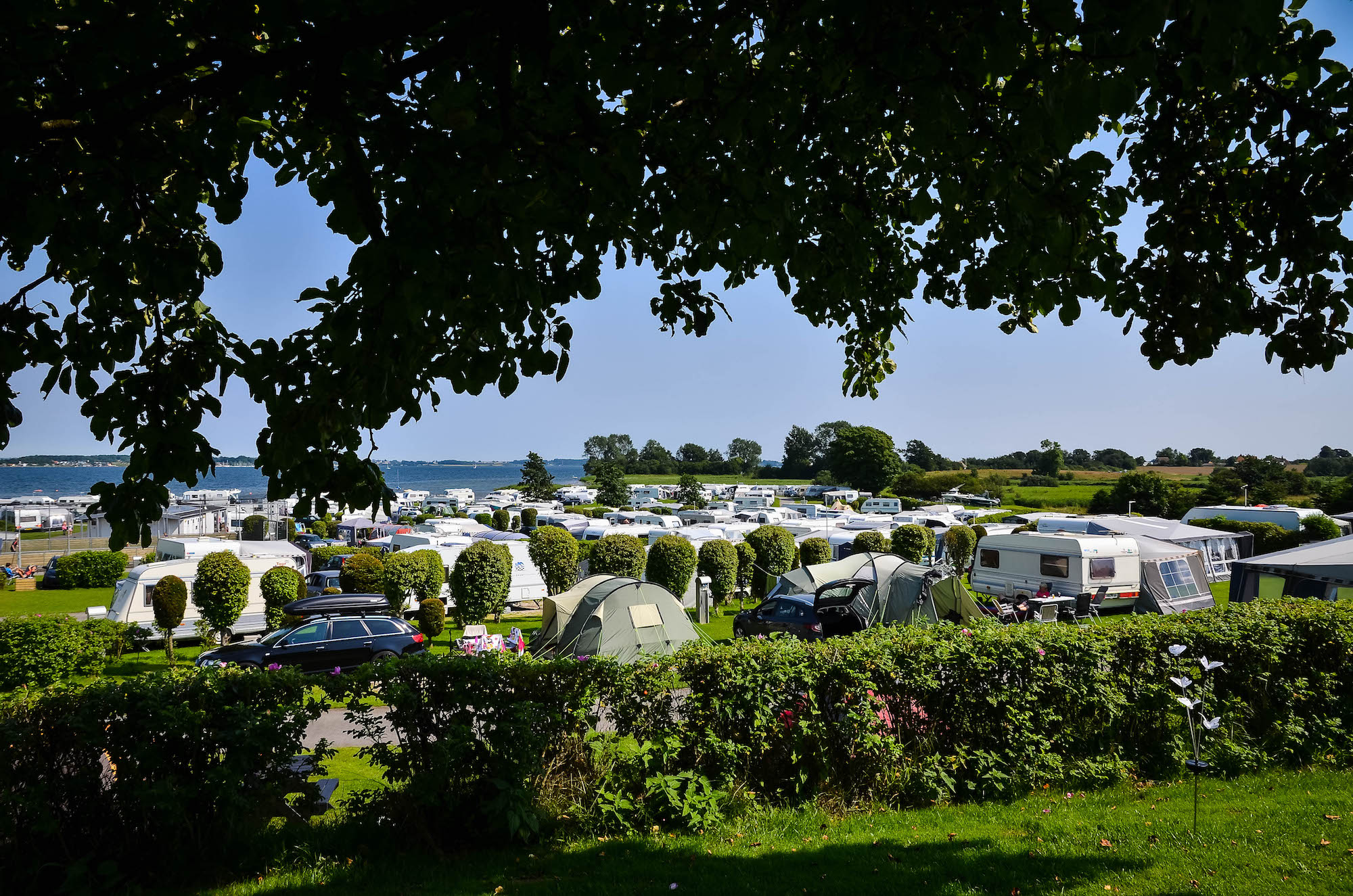 Sett campingvognen bare noen få meter fra vannkanten. Det er mulig på Lærkelunden Camping ved Gråsten - en plass med lys, luft, vann og flotte fasiliteter.