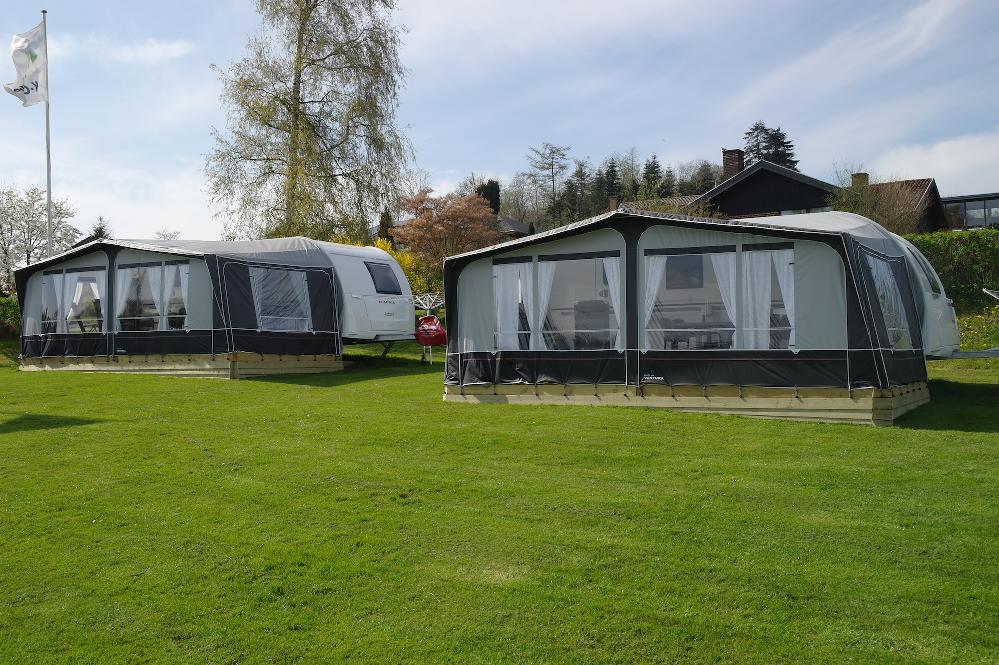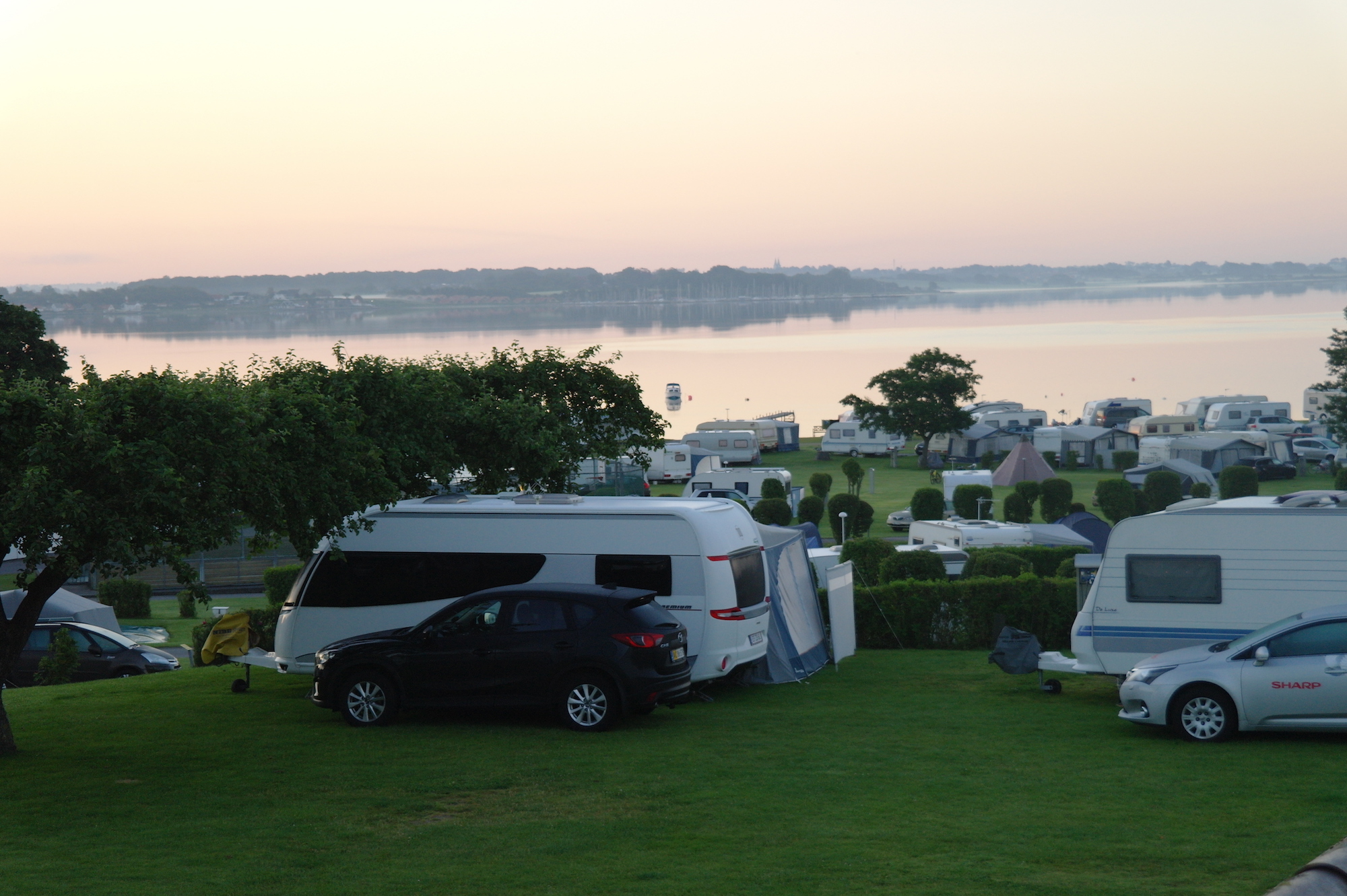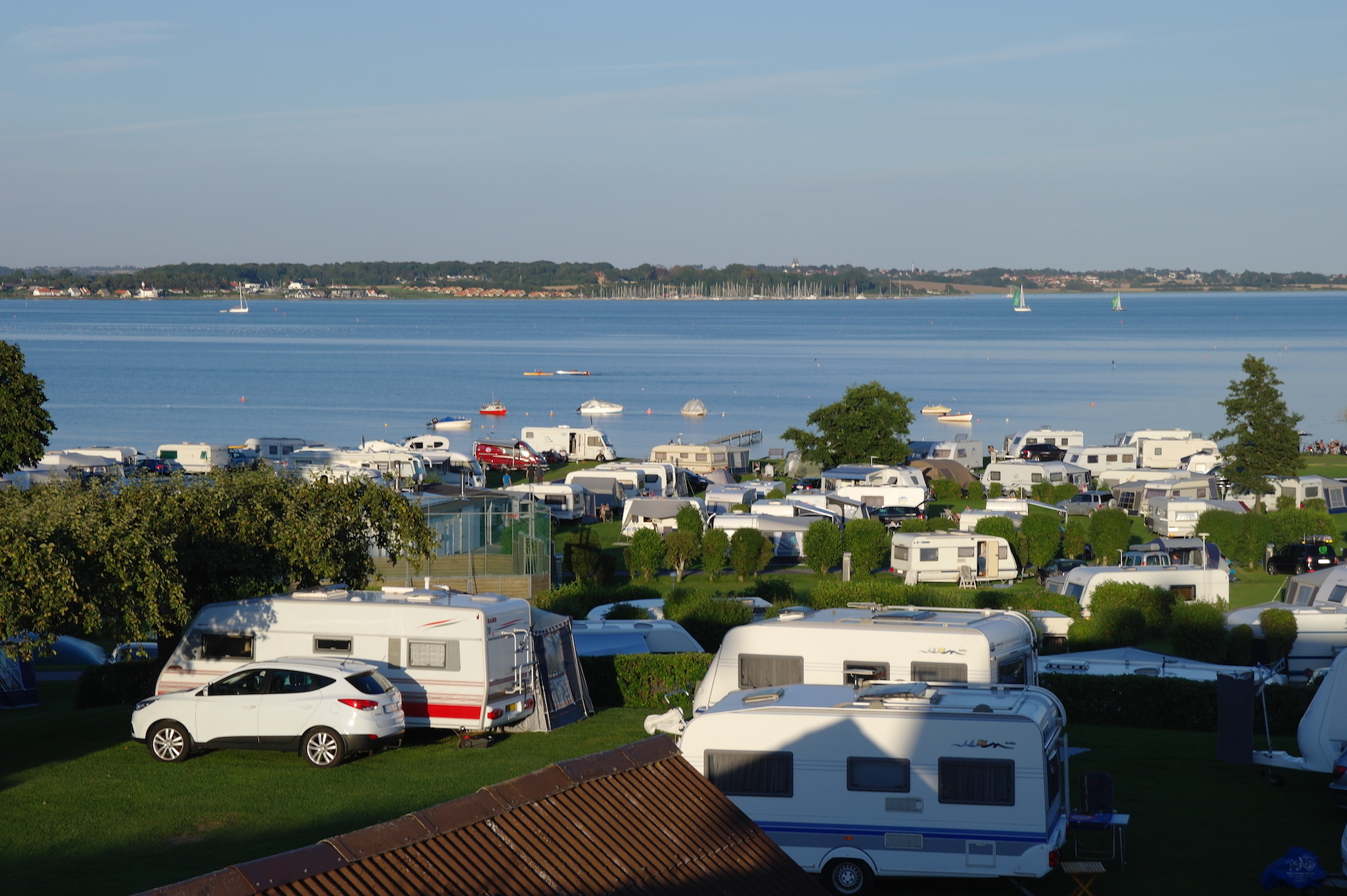 Og når vi skriver ved foten av - så mener vi det. Du kan bokstavelig talt plassere det rullende feriehjemmet slik at du stikker føttene i det våte element bare du åpner døren til campingvognen, og det er litt av et særsyn på en dansk campingplass.