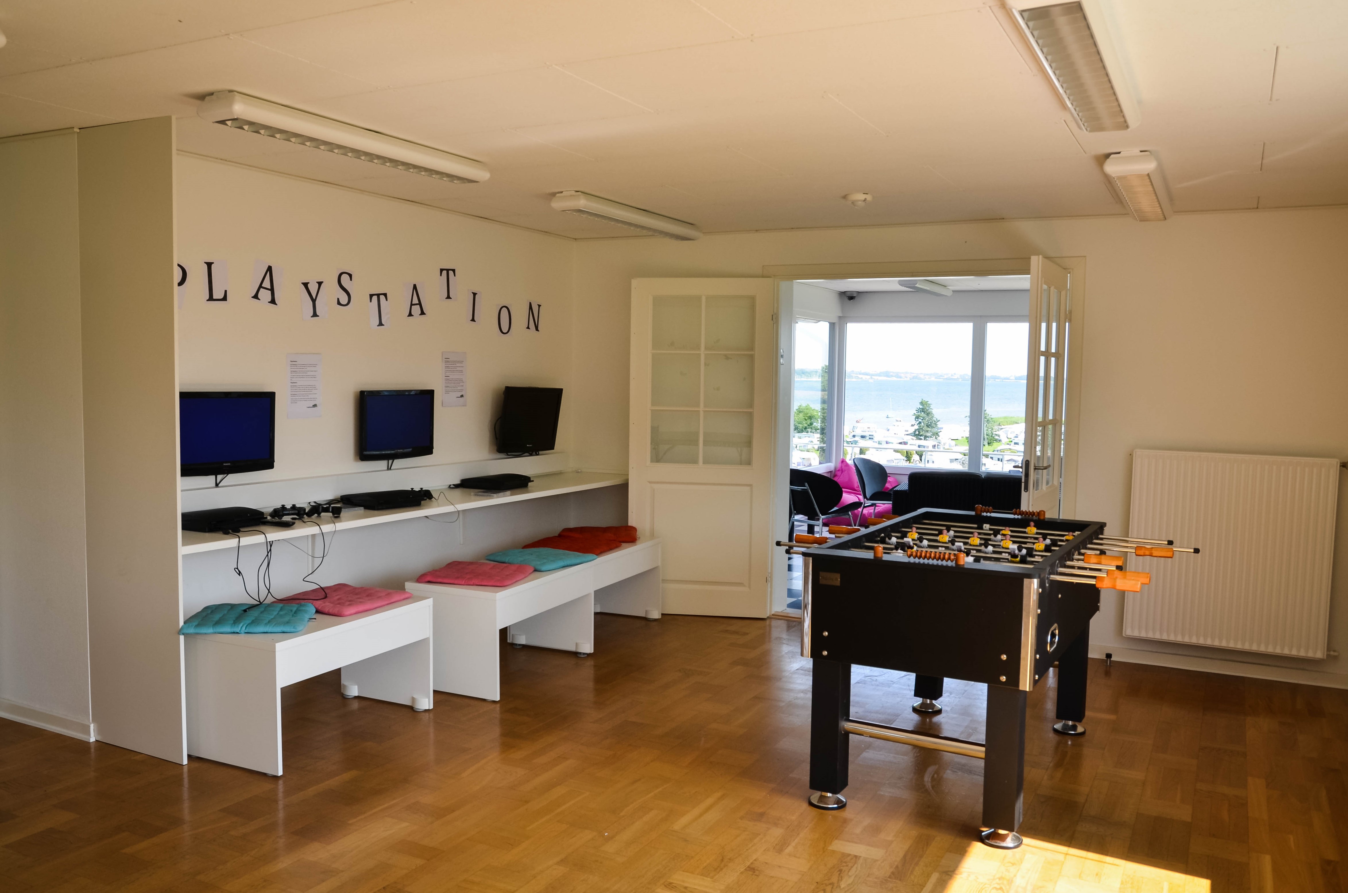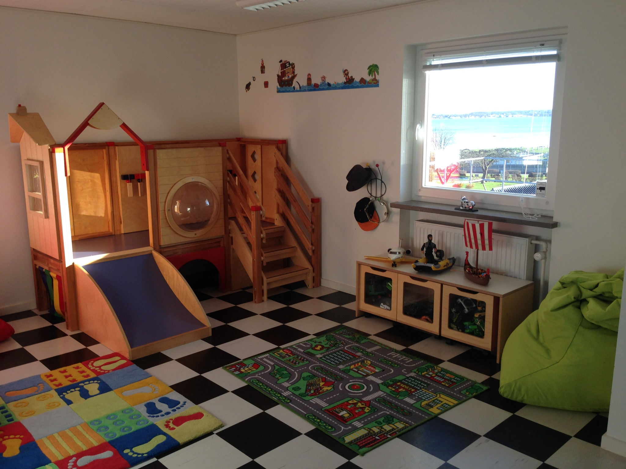 Plassen ligger på en skrånende grunn som grenser til plassens egen lille strand ved Flensborg Fjord.