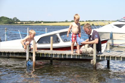 Når man etter litt tid får utforsket de mange mulighetene og fasilitetene på Sandager Næs Camping, fortsetter de positive inntrykkene. Plassens beliggenhet er fantastisk. Som campingplassens tittel antyder, ligger den rett ut mot Sandager Næs. Det gir en herlig utsikt fra mange av plassene, og campingplassens egne båt- og badebrygger og sandstrand gir noen unike muligheter for vannsport og seiling.
