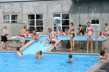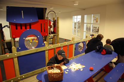 Bygningen er gjennomtenkt da man som forelder kan sitte og nyte et glass iskald øl i restauranten og fortsatt ha full oversikt over hva barna gjør. Det er nemlig utsikt til stort sett alle områder fra restauranten.