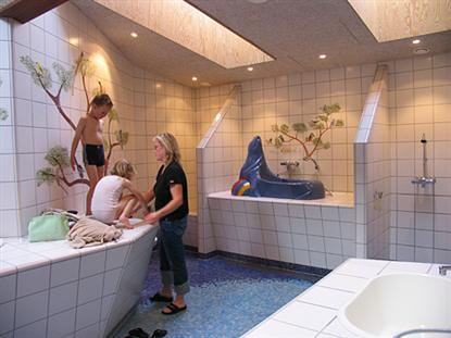 Plassens basseng er delt inn i 3 hovedelementer: Basseng, boblebad, sklie med fallbasseng - og bassenget er et stort pluss. Boblebadet er bygget inn midt i bassenget, og en del av det store bassenget er "inngjerdet" til de mindre.