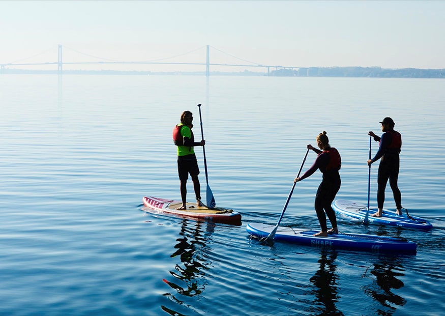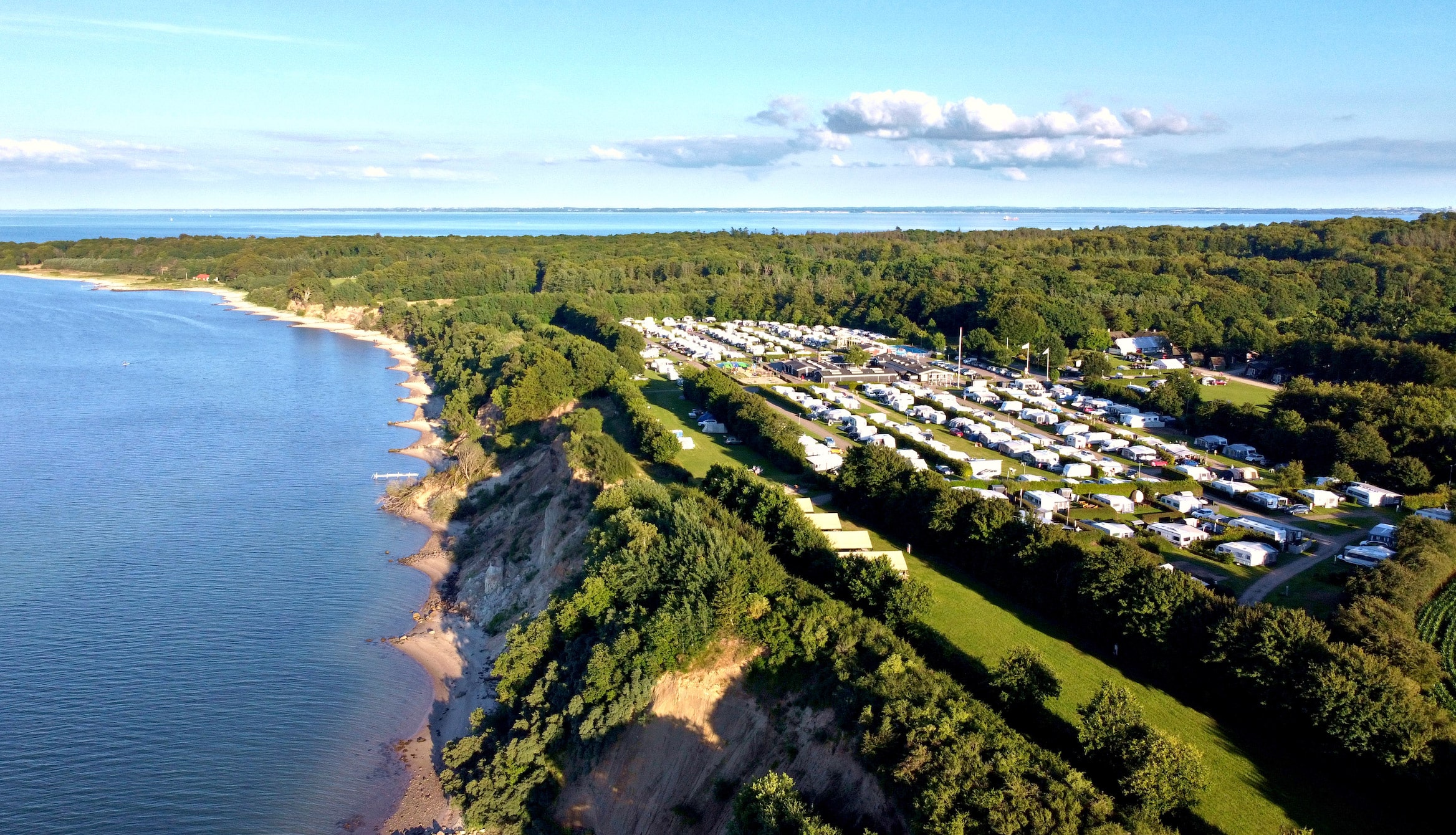 Plassen ligger i et helt enestående naturområde på skråningen i nærheten av Trelde Klint og i gangavstand til Trelde Næs. Det er tilgang til blått flagg-strand via sti fra campingplassen. Det er en smal strand med steingjerder og deilig sand. Vannet er grunt og rolig, så her kan man føle seg trygg med barna. Man kan bade og slappe av, eller fiske direkte fra stranden. Er man mer aktiv, er det et godt sted å prøve ferdighetene sine på et paddleboard eller i en havkajakk.