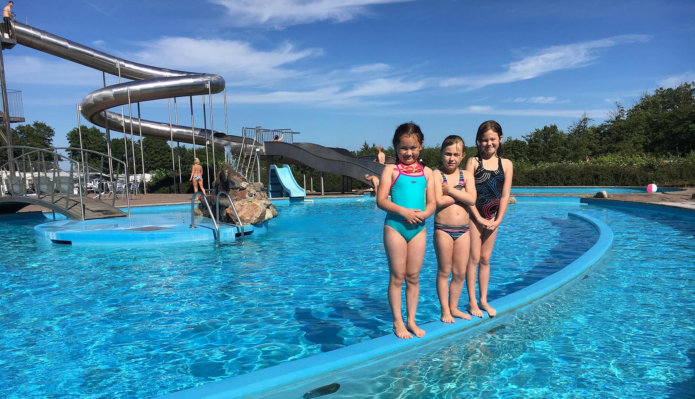 Stort og flott utendørs badeland med 8 meter høy og 50 meter lang vannsklie, boblesone, motstrømskanal og mye mer. Her er det moro og lek nok til mange herlige soldager.