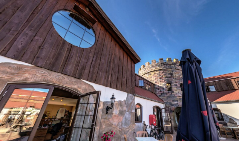 Når du stiger ut av bilen, trer du inn i en verden av vikinger og norrøn mytologi, som straks skyver den travle hverdagen i bakgrunnen for en stund. Hele plassen er bygget opp som en inspirerende vikingsti, med for eksempel badelandet Asgaard, fellesrommet Valhalla, Thors plass og Yduns plass.