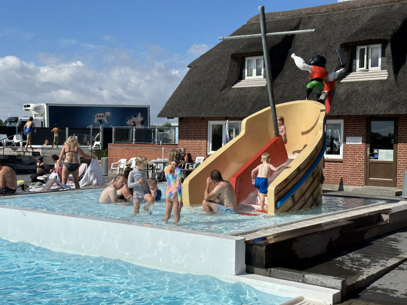 Flott ny vannsklie for våre minste vannglade barn. Sklien har pirattema og innbyr til masse god lek.