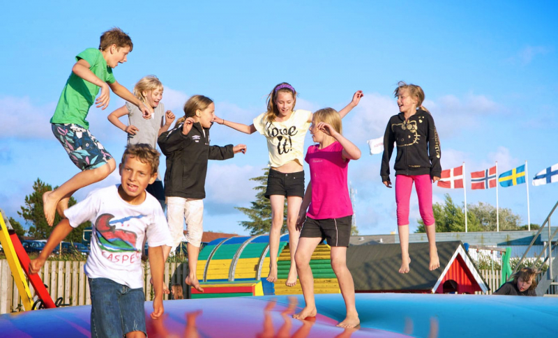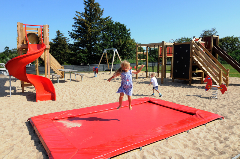 Den store barnevennlige lekeplassen har noe for enhver smak. Innta borgen, ta en tur i klatrenettet eller prøv den store hoppeputen. Her er trampoliner, zipline, klatretårn, vippedyr og mye mer.