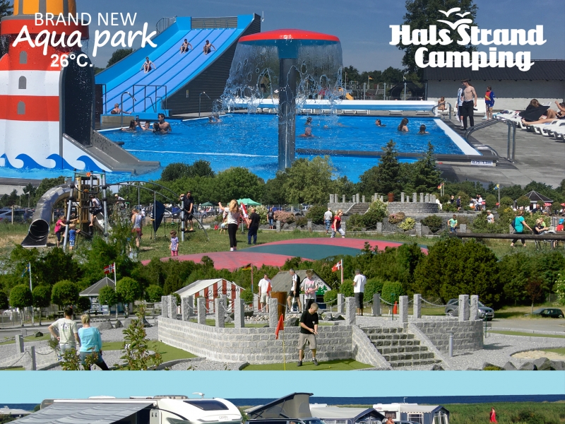 Hals Strand Camping er en flott plass med et nyåpnet utendørs Aqua Park med oppvarmet badevann, 3 basseng, surf hill rutsjebane, bobleområde, barnebasseng og fossefall. I tillegg er det en tilhørende solterrasse med solsenger som inviterer til total avslapning. Når sulten og tørsten melder seg, kan dere velge mat fra Bake-Off butikken, Grill & Isbaren eller nyte en deilig middag i restauranten, eller en drink i puben.