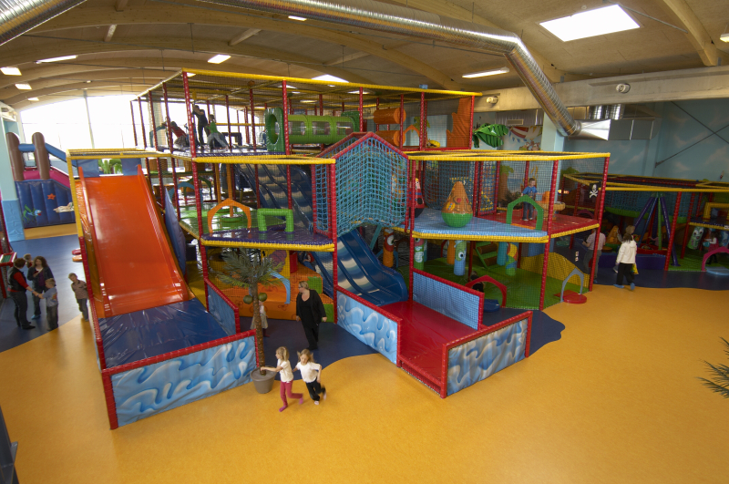 Vi har innendørs svømmehall og et stort 1500m2 innendørs lekeland.