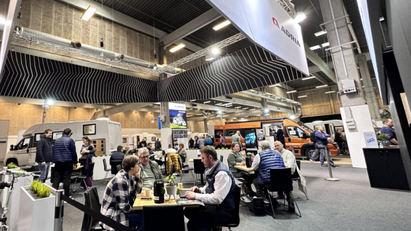 Det var ingen tegn til krise hos Adria på årets Ferie for Alle-messe i Herning. Interessen var rekordhøy, og salget av vogner og bobiler på messen var over gjennomsnittet sammenlignet med tidligere år.