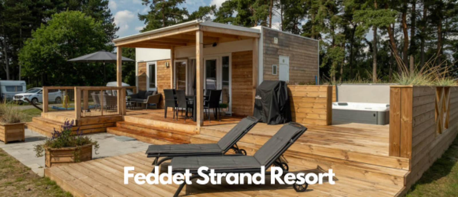 På Feddet Strand Resort kan du leie et spa-mobilhome og få litt ekstra luksus på campingferien. Her er det soveplasser til fire voksne og to barn – og utenfor er det en stor terrasse med egen utendørs spa. På terrassen finner dere også en gassgrill med fri gass.