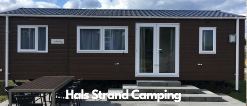 I Nordjylland kan du bo i et moderne mobilhome på Hals Strand Camping. Her er det hele åtte sengeplasser – men mobilhomene anbefales til seks personer på grunn av sitteplasser og størrelsen på 35 kvadratmeter.