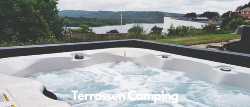Hos Terrassen Camping & Hytteferie kan du velge mellom tre ulike mobilhomes. Det minste har fem soveplasser og frister med privat utendørs spa og en fantastisk utsikt.