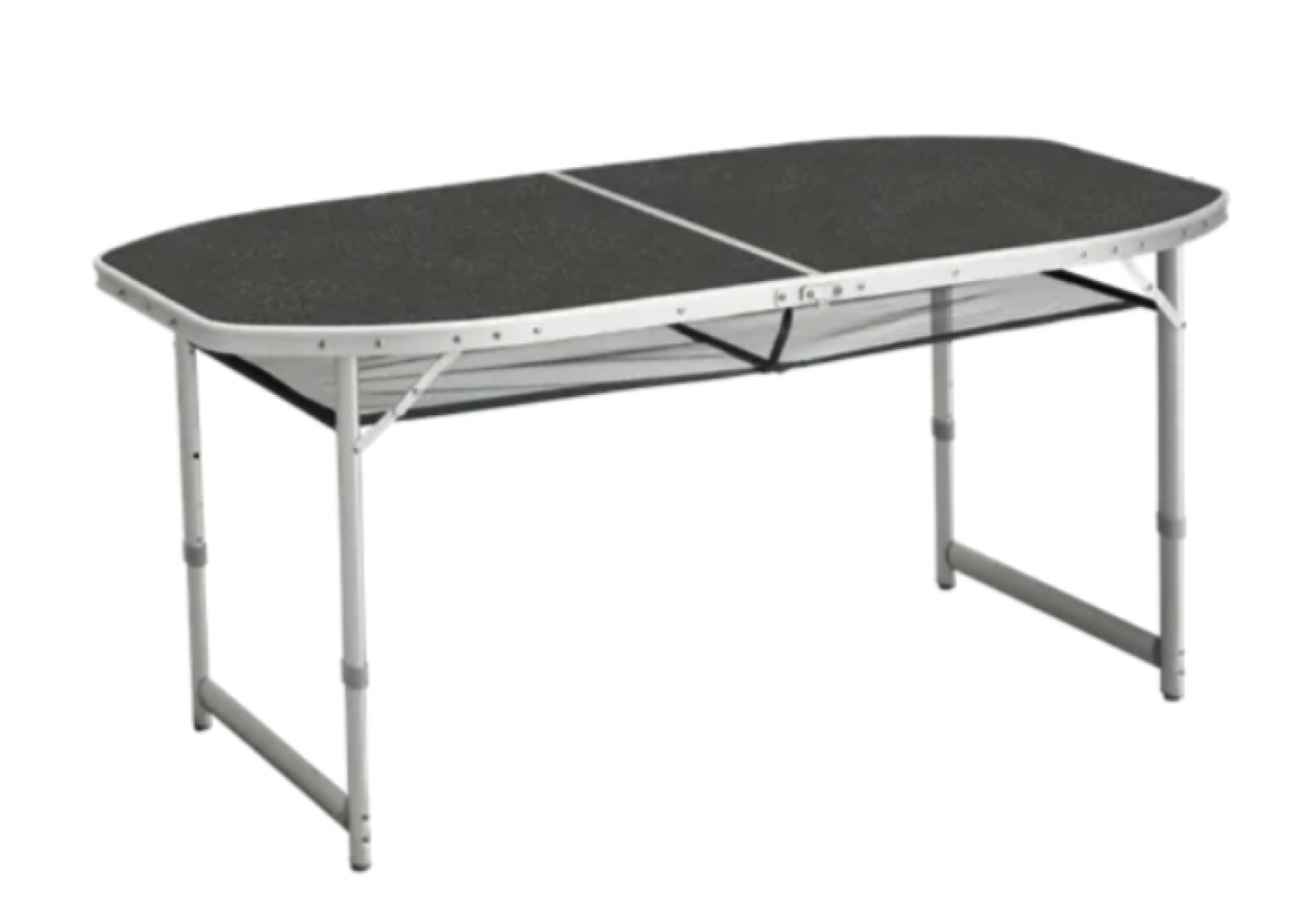 I tillegg har det en smart netthylle under bordet, slik at du får mer plass og ekstra oppbevaring i skyggen under bordet. Til slutt er bordet utstyrt med et praktisk håndtak, så det er lett å bære når det er slått sammen.
