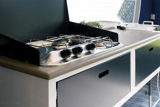 I Apollo Lux, Concorde og Savanne har det også kommet dobbelskap på kjøkkenet og mye mer benkeplass. Vasken er ikke lenger lagt ned i benkeplaten, men er nå plassert i et uttrekk i enden av kjøkkenseksjonen, slik at man kan bruke over halvparten av den store benkeplaten til matlaging. Resten av bordet har en smart og driftssikker komfyr i rustfritt stål med 3 gassbluss.