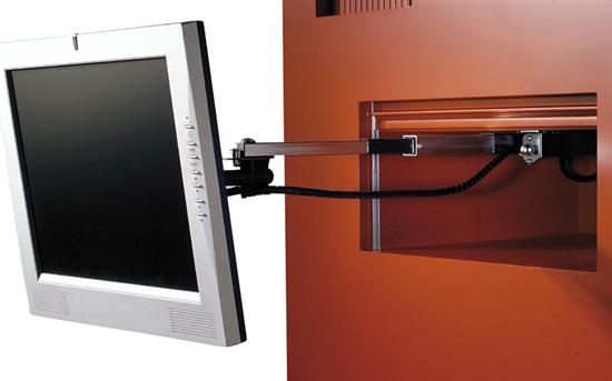 Den andre serien, MEDIO, er uttrekksbeslag til TV-skapet. I denne serien finnes det både modeller for hengende og stående montering. Alle MEDIO-beslag har både tilt- og dreiefunksjon, og kan bære en 17’’ skjerm opptil 8,5 kg.