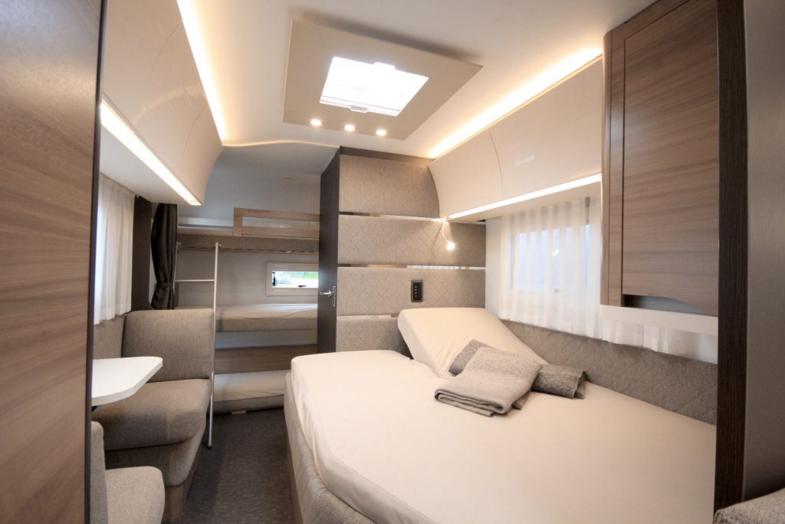 Adrias Alpina-program har spesielt to innredninger i 6,6-metersklassen som har solgt ekstra godt – én egoistinnredning og én køyevogn. Disse er nå ”smeltet sammen” i en ny, lekker innredning på 7,5 meter, tiltenkt barnefamiliene.