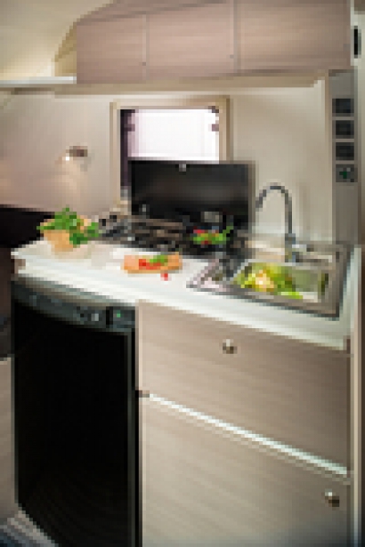 10. State of the art kjøkken og bad. Action er utstyrt med Adrias helt nye løsninger: det plassbesparende og geniale ERGO-baderommet og det nye SMART-kjøkkenet som optimaliserer arbeidsplassen på kjøkkenet.