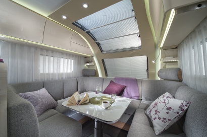Kan det virkelig stemme at en så romslig vogn bare er 5,7 meter? Årsaken til romfølelsen kan blant annet finnes i innredningen med åpen planløsning mellom kjøkken og lounge, og det suppleres lekkert med det lys- og romgivende sky-light panoramavinduet.